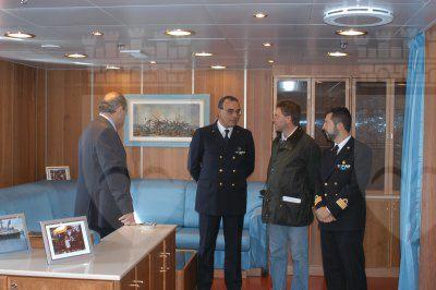 Roberto Dipiazza consegna sulla nave Elettra della marina Militare Italiana un frammento del panfilo Elettra di Guglielmo Marconi : Trieste : 2003