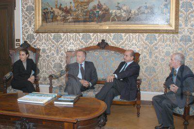 Il sindaco Roberto dipiazza con il Console generale degli Usa a Milano Douglas McElhaney durante l'incontro nel salotto azzurro del Municipio.