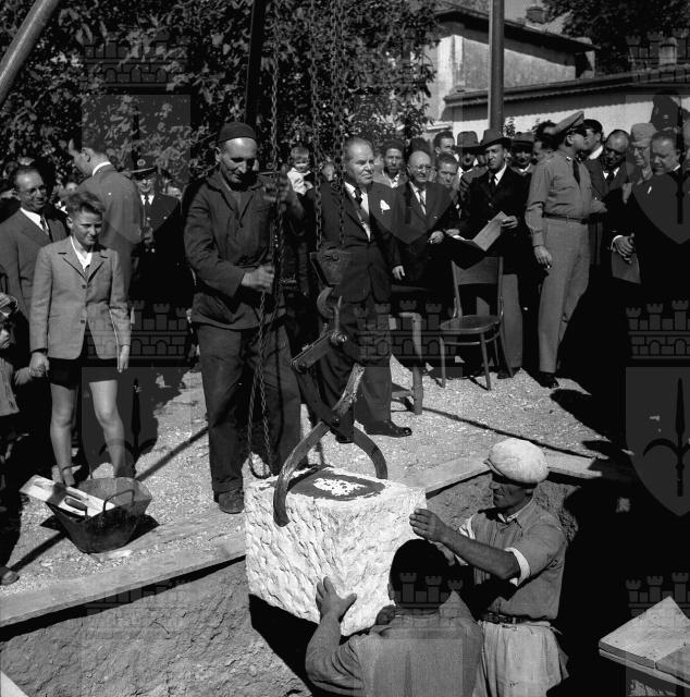 Il Sottosegretario al lavoro e alla previdenza on. Del Bo, accompagnato dal sindaco Bartoli, visita la scuola elementare di San Sabba in occasione dell'inaugurazione dell'impianto radiofonico offerto dall'INAIL. Presenzia alla posa della prima pietra del complesso di case popolari INAIL a San Sabba e partecipa alla firma degli accordi per la cessione all'INAIL del terreno di via del Teatro Romano, nella saletta delle cerimonie del Municipio.