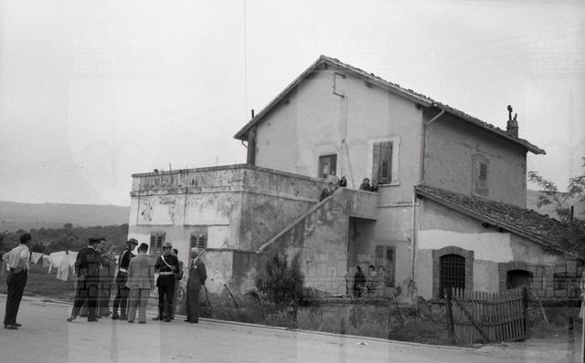 Il dott. Palermo, presidente della Corte d'Assise, compie un sopralluogo a Mattonaia, località nei pressi di Domio, in relazione al processo per il delitto di Emilio Jurissevich, soprannominato la "primula rossa", ucciso da due sicari dell'OZNA il 19 novembre 1949 per motivi politici.
