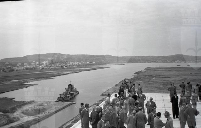 Il Sottosegretario al Ministero del commercio e industria, on. Antonio Carcaterra, a Trieste in occasione del Convegno economico indetto dalla DC nei giorni del 13 e 14 settembre vertente su problemi e questioni dell economia triestina, visita la zona industriale e la raffineria Aquila (da: Giornale di Trieste, 12 settembre 1952)