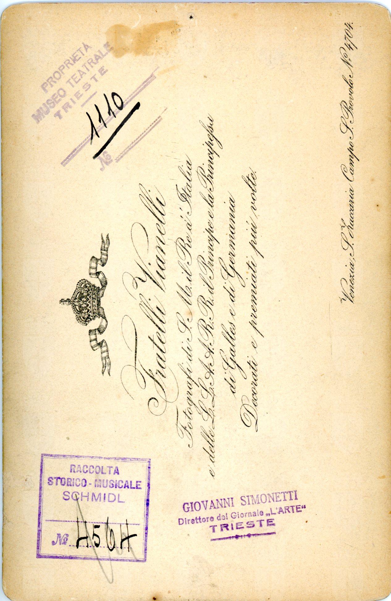 Proprietà Ente pubblico territoriale; Civico museo teatrale C. Schmidl; donazione; Simonetti, Bianca; 1933