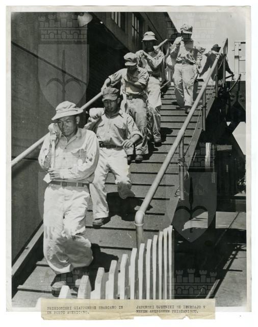 Prigionieri giapponesi sbarcano in un porto americano