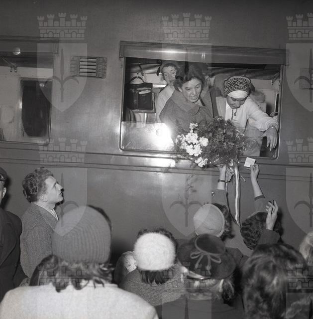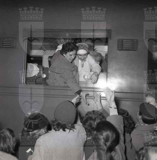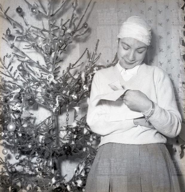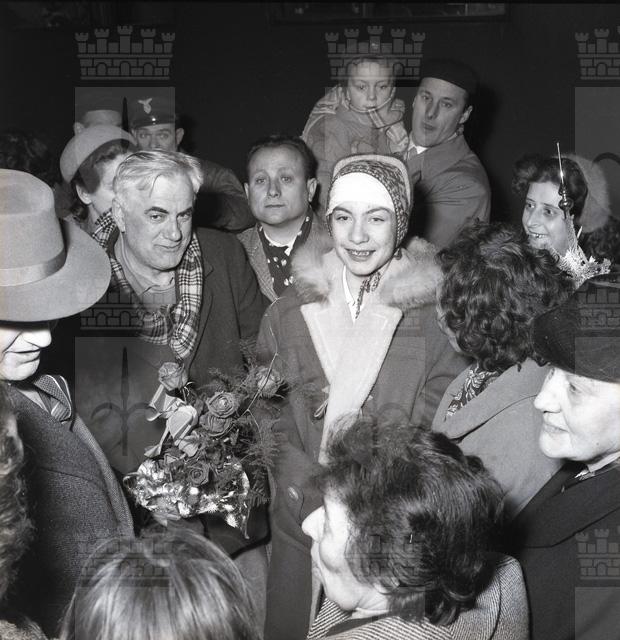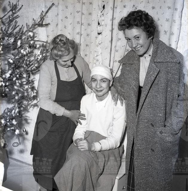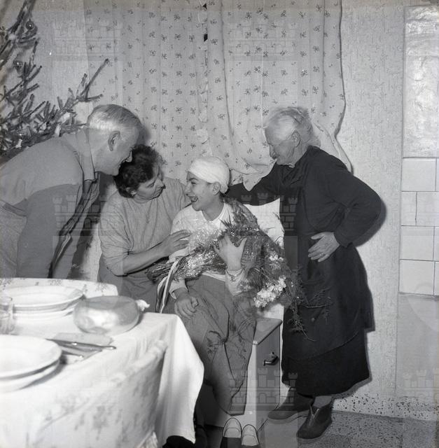 La giovane gradiscana Alessandra Fornasiero rientra da un viaggio a Stoccolma dove è stata operata dal professore Herbert Olivecrona. Con una sottoscrizione il Piccolo finanzia l'intervento che viene descritto nelle pagine del giornale. La documentazione fotografica utilizzata dal giornale è di Giornalfoto. Il servizio di Foto Omnia documenta anche il rientro a Gradisca.