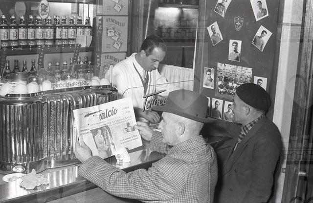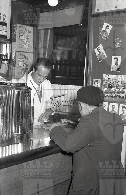 Sul bancone si nota la macchina del caffè mentre sulla mensola sono presenti le bottiglie di Bianco Sarti