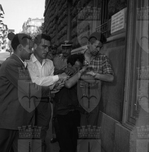 Responsabile dell'assassinio del brigadiere dei carabinieri Giovanni Bressan, Ambrogio Carri Hudorovich viene catturato a Duino. Borsatti lo immortala nell'atto di coprirsi il volto mentre accede alla caserma di Via Hermet. La foto è pubblicata su Il Piccolo dell'11 agosto 1956