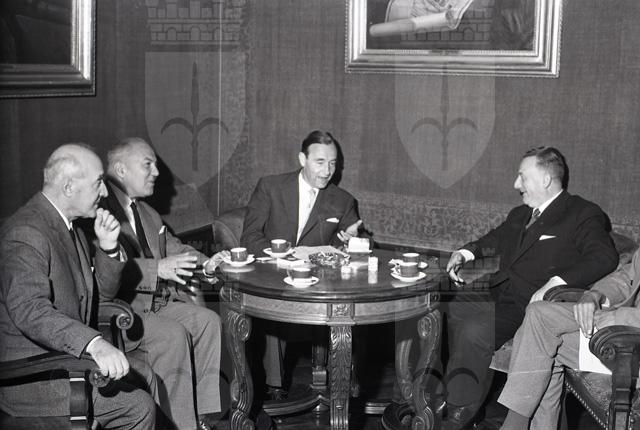 L'ambasciatore Klaiber arriva in città con la nave Saturnia. Accompagnato dal presidente della Camera di commercio Caidassi e dal presidente dell'Ente Fiera Suttora, Klaiber incontra alcuni dei maggiori esponenti della vita economica cittadina. Tratto da Il Piccolo sera del 22.09.1962