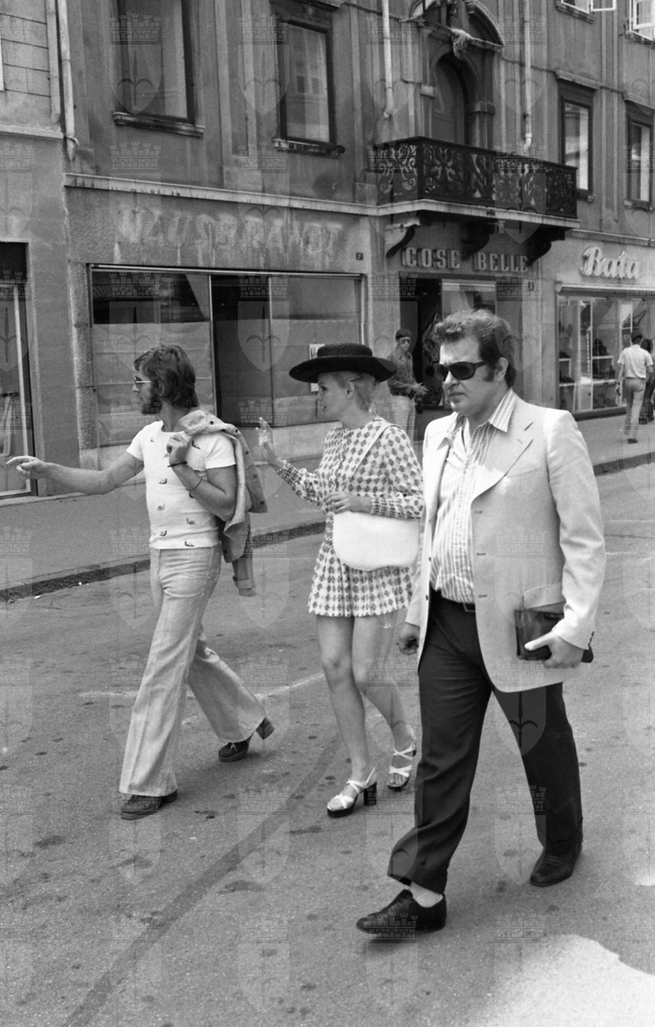 Caroll Baker assiste alla proiezione del film Baba Yaga del regista Corrado Farina insieme all'attrice Isabella da Funes.