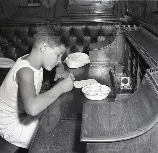 La nave scuola Giorgio Cini dell'Istituto Nautico di Venezia attraccata al molo Audace. Si tratta di un brigantino a tre alberi adibito a nave scuola dal Centro di Cultura marinara della Fondazione Cini e destinato ad accogliere 200 bambini di marinai e pescatori. Foto del comandante, la medaglia d'oro Giovanni Bardini, con alcuni visitatori. Riprese di un bambino alla scrivania, a bordo della nave.