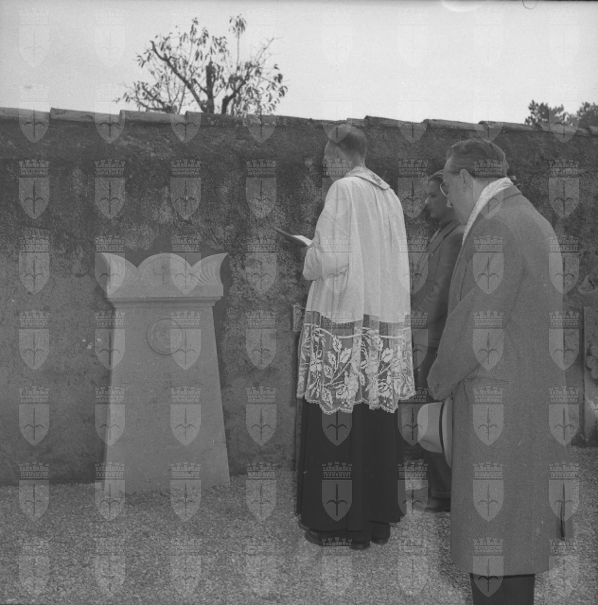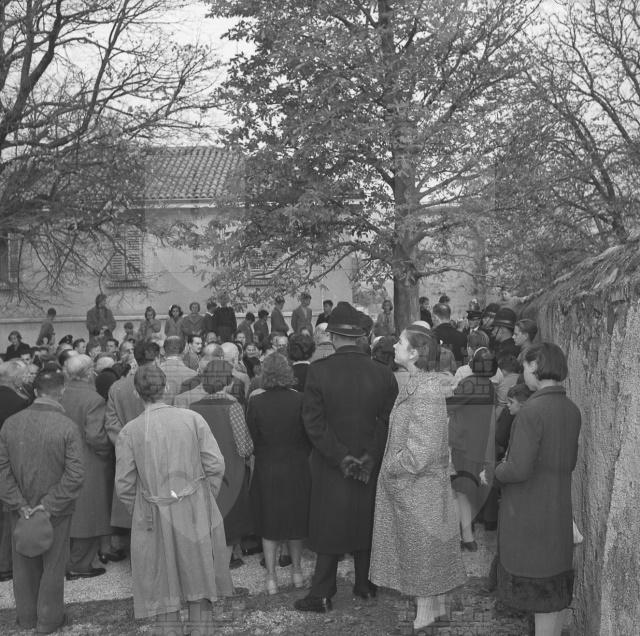Scoprimento della lapide commemorativa in memoria di Antonio de' Giuliani posta sul sagrato della chiesa di Cattinara, a cura della casa editrice Lo Zibaldone di Anita Pittoni, della Societa di Minerva, sotto gli auspici del Comune. Sulla lapide medaglione raffigurante il de' Giuliani scolpito da Ruggero Rovan (da: La Bora, a. 2, n. 4, aprile 1978, p. 8-9)