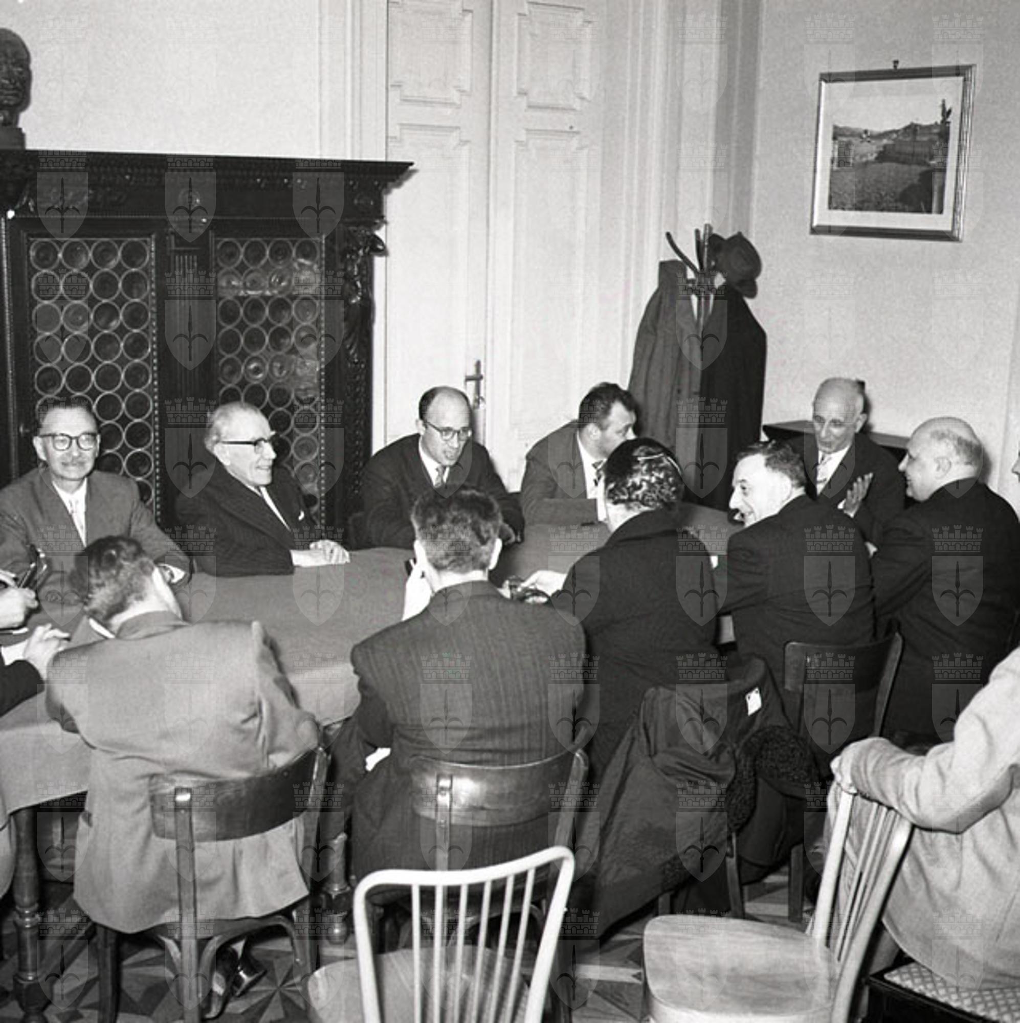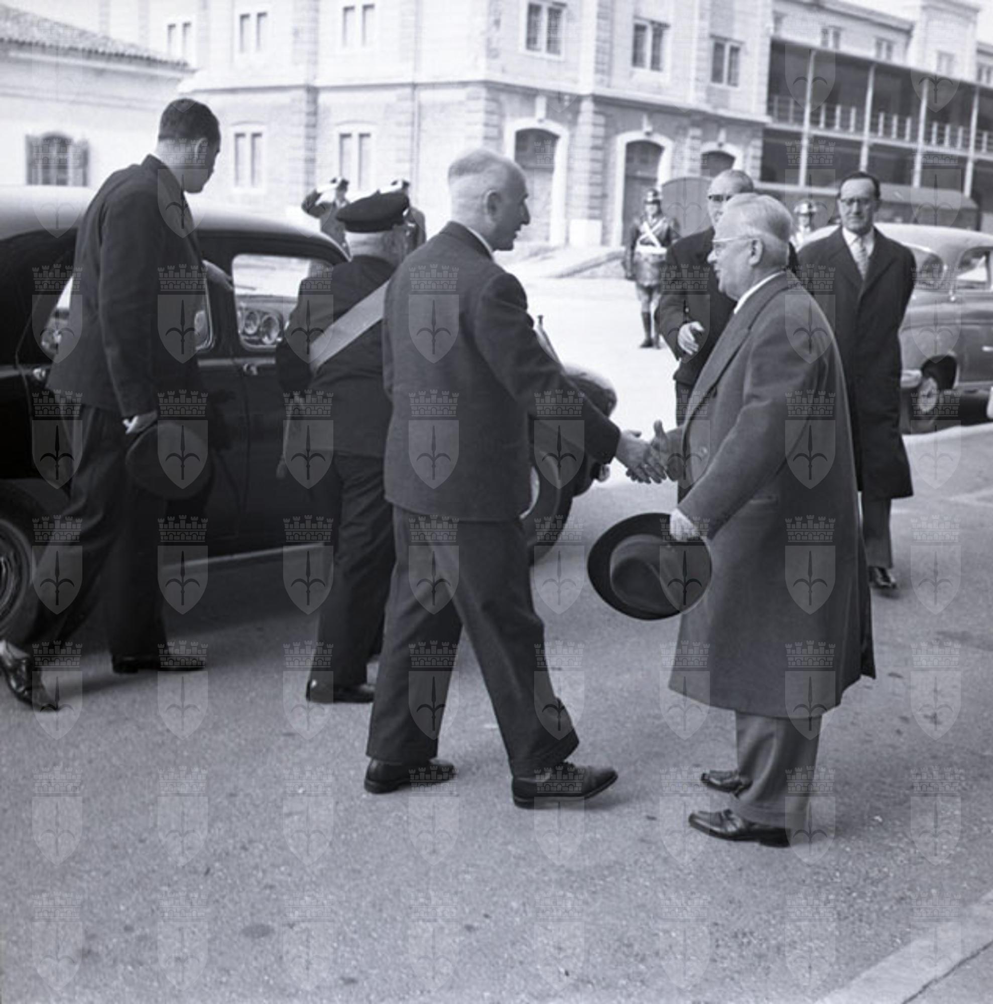 Il ministro della Marina Mercantile con la moglie, l'onorevole Maria De Unterrichter si reca a Trieste e visita il porto, il Municipio, il vescovado con mons. Santin, il Circolo della Cultura e delle Arti