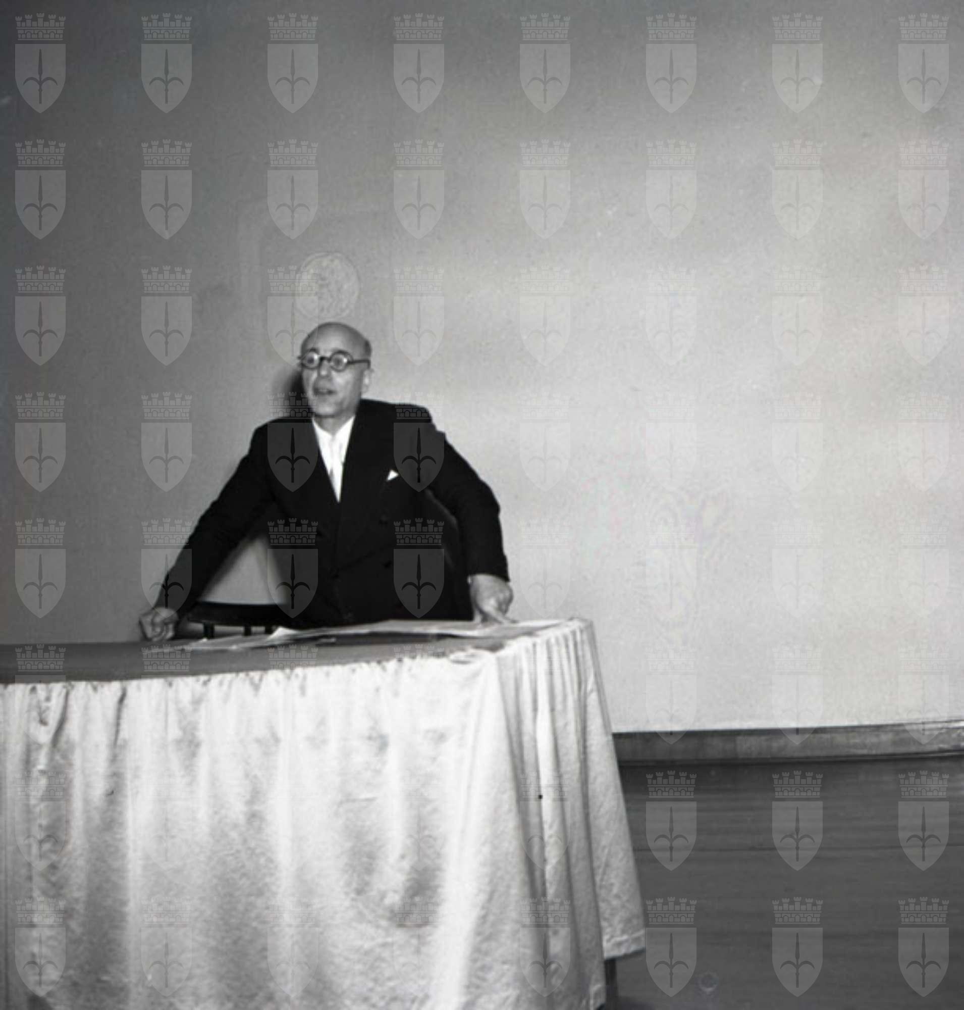 Il poeta Stefano Tuscano, pseudonimo di Stefano Benocci (1893-1966) viene a Trieste per parlare del sentimento dell'esilio in Dante. Apre la conferenza con una lirica dedicata a Trieste.