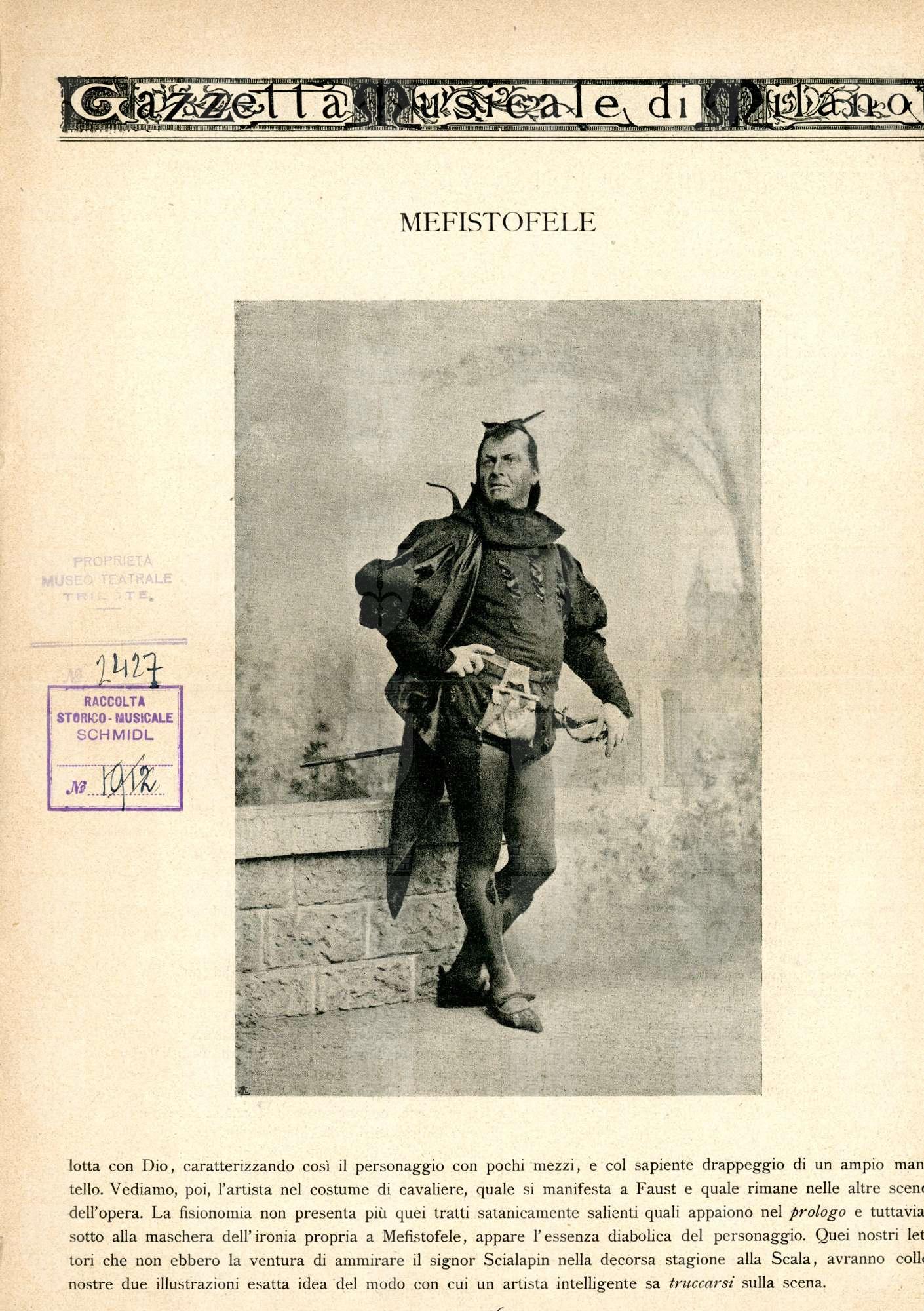 Fëdor Ivanovič Šaljapin (1873-1938). Il suo cognome viene traslitterato dal cirillico anche come Chaliapin o Shalyapin ed è stato un cantante lirico russo. Šaljapin ha con l'Italia un rapporto intenso, che si sostanzia di legami professionali, familiari e d'amicizia. A partire dal 1901, quando debutta a Milano nel Mefistofele di Boito, prima tappa della sua sfolgorante carriera internazionale, torna in Italia con regolarità fino al 1913, alternando agli impegni di natura professionale soggiorni a Monza, dove gli Šaljapin hanno una casa di proprietà. Ma una delle ragioni che lo attraggono più frequentemente in territorio italiano è l'amicizia con Maksim Gor'kij, che va spesso a trovare a Capri. Il cantante interrompe i suoi frequenti viaggi in Italia nel 1913, anno in cui Gor'kij rientra in Russia, per riprenderli con regolarità nella seconda metà degli anni Venti fino al 1937, anno precedente a quello della sua morte.
