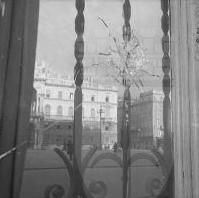 Fori e tracce dei proiettili sparati dalla polizia inglese durante gli scontri del 5 e 6 novembre 1953, sul colonnato della chiesa di Sant'Antonio e in piazza Unita' d'Italia.
