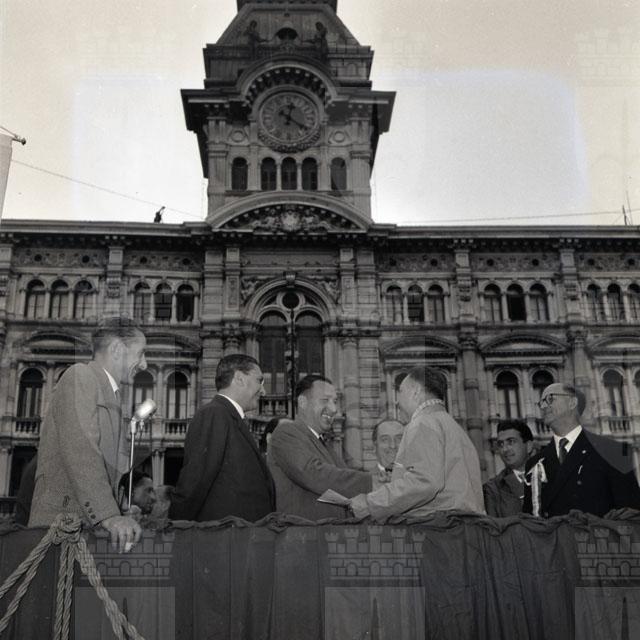 Presso il monumento ai Caduti di San Giusto il presidente del Vespa Club di Trieste Opiglia consegna la fiaccola a Tassinari, presidente del Vespa Club d'Italia e d'Europa. A seguire circa settanta vespisti di altrettante città d'Italia si recano in piazza Unità, ricevuti dal prosindaco Visintin. Nella piazza in festa gremita di gente alcuni vespisti in sella alle loro motociclette.