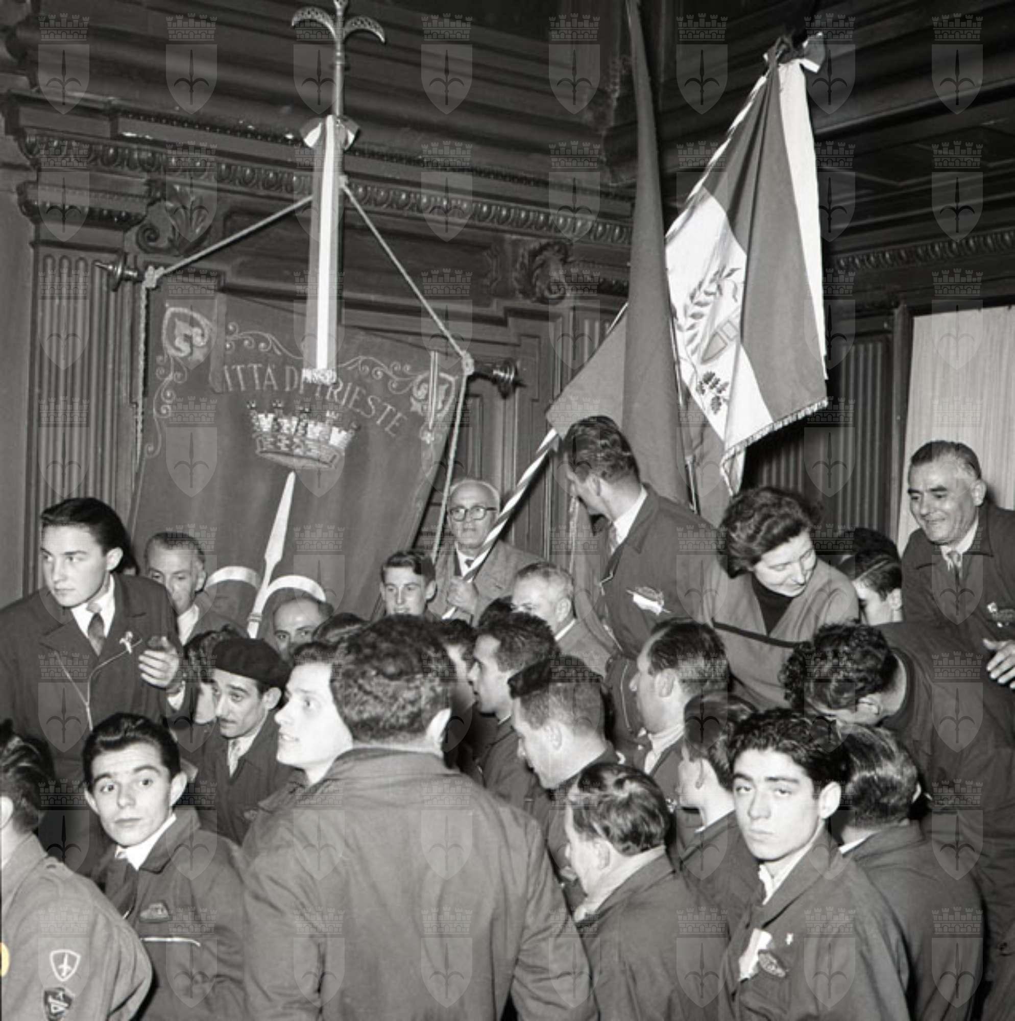 Un'autocolonna tricolore proveniente da Reggio Emilia che porta la prima bandiera tricolore della Repubblica Cisalpina donata dal Comune di Reggio Emilia alla città di San Giusto arriva il 31 ottobre in Piazza Unità. L'autocolonna viene prima ricevuta a Miramare e poi scortata fino a Piazza Unità da una colonna del Vespa Club. Testo tratto da Il Piccolo, 31.10.1954, p. 2.