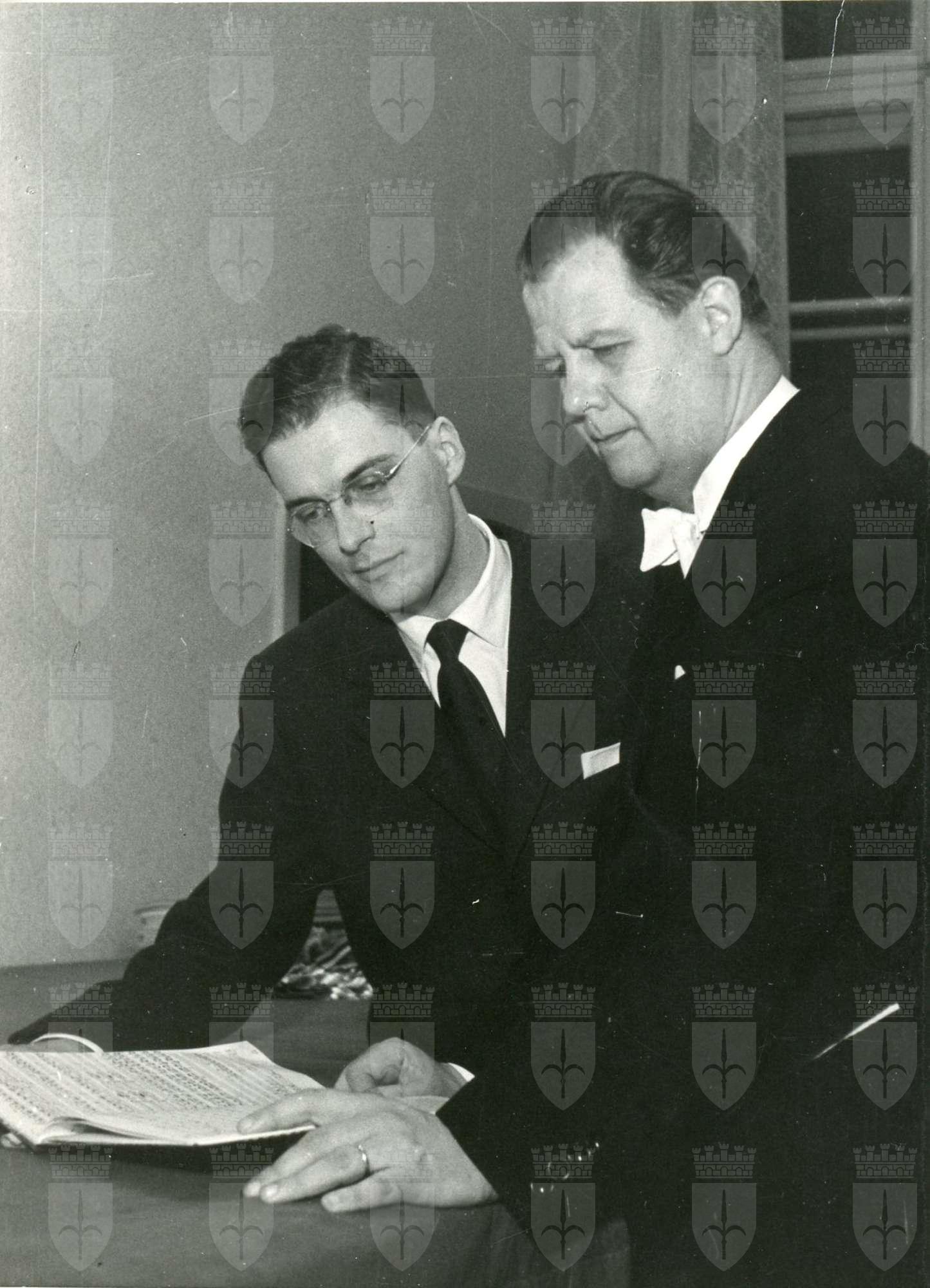 Pavle Merkù e Samo Hubad in occasione della esecuzione di Concerto per piccola orchestra a Lubiana