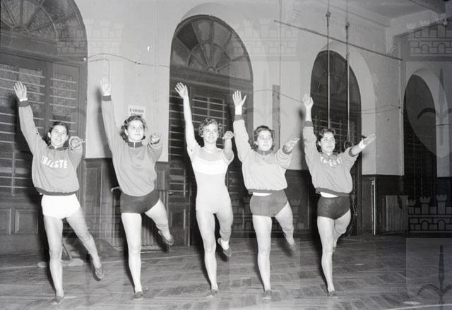 Cinque ginnaste in partenza per l'allenamento collegiale
