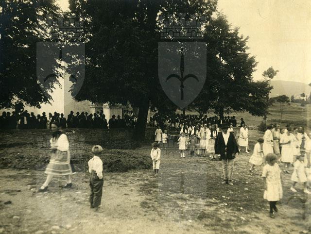 Popolazione in costume davanti alla Chiesa