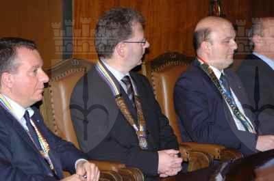 Il sindaco Roberto Dipiazza ed il Presidente del Consiglio comunale Bruno Sulli ed l'assessore comunale Maurizio Bucci con il presidente di Round Table Italia Maurizio Giudici e gli altri rappresentanti presenti al Meeting organizzato dalla Round Table Italiana in collaborazione con il Comune di Trieste, durante l'incontro avvenuto nella sala del Consiglio del Municipio.