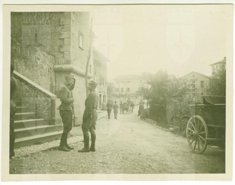 Ritrae due ufficiali del 12. Reggimento Ulani, il tenente Pitlik e il tenente Lukacs, sul fronte italiano. Una breve nota manoscritta sul verso di una delle fotografie informa che quest'ultimo morirà il 1. novembre, proprio alla fine della guerra, forse in seguito alla Battaglia di Vittorio Veneto (24 ottobre-3 novembre 1918), a cui probabilmente il reggimento partecipò, e che segna la fine della guerra sul fronte italiano. Il 29 ottobre l'Austria-Ungheria chiese la resa. Il giorno successivo giunse a Villa Giusti, a Padova, la commissione austriaca alla quale furono sottoposte le clausole del testo dell'armistizio, siglato il 3 novembre 1918.
