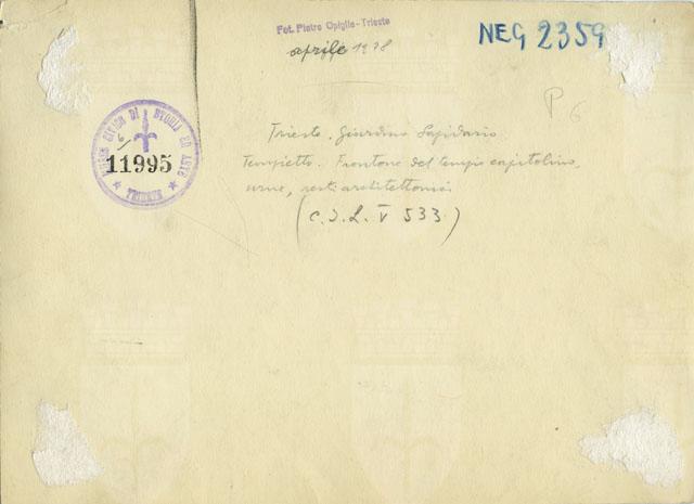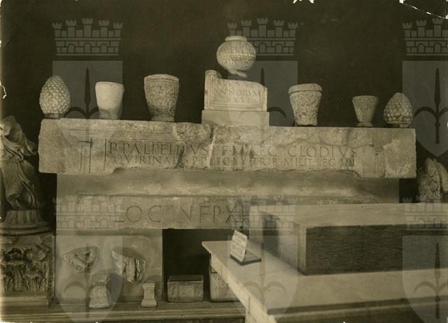 Allestimento di materiali lapidei tra cui iscrizioni, cippi, urne, rilievi e frammenti architettonici e scultorei risalente alla fine degli anni Venti collocato all'interno del tempietto neoclassico del Lapidario del Museo civico di Storia ed Arte di Trieste.