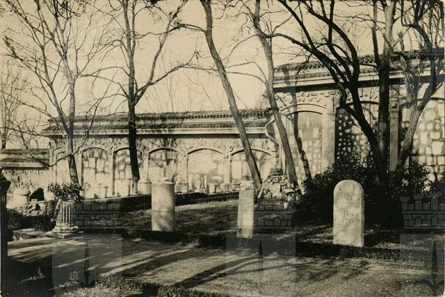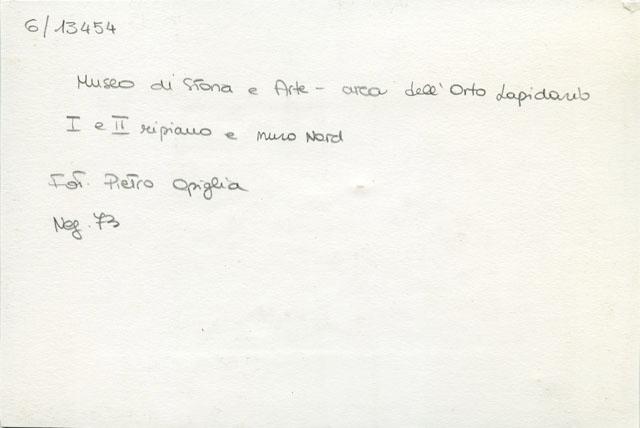 Veduta dei ripiani inferiori dell'Orto Lapidario del Museo di Storia ed Arte di Trieste con il muro di cinta ad arcate contenente le lapidi triestine e aquileiesi.