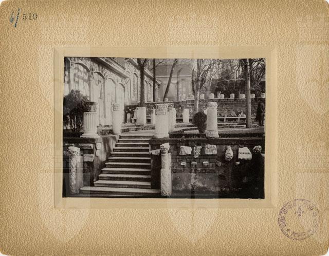 Veduta dei ripiani dell'Orto Lapidario del Museo di Storia ed Arte di Trieste ripresa dal tempietto neoclassico situato nel ripiano inferiore.