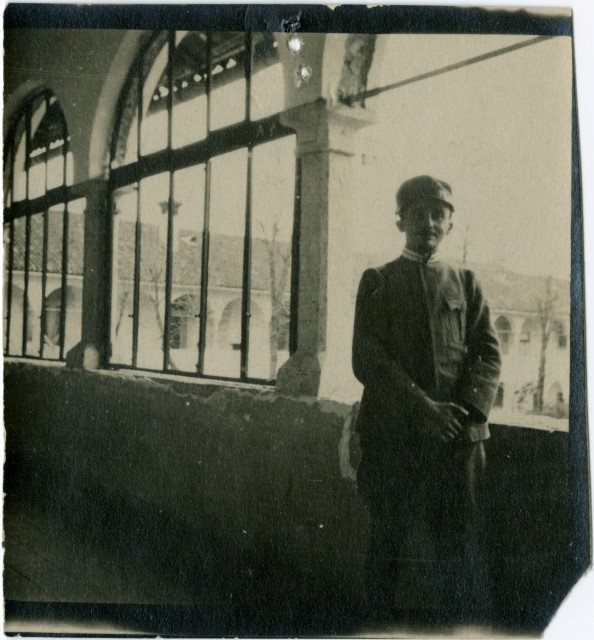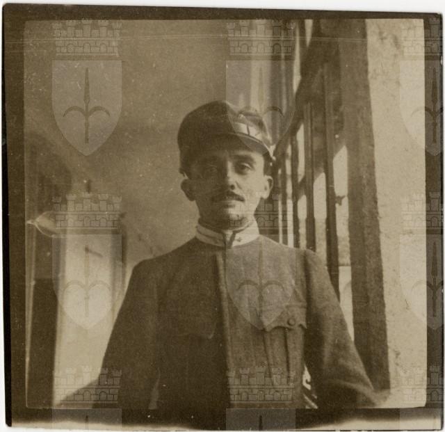 Spiro Xydias convalescente nell'ospedale di Tappa a Udine, dopo aver riportato delle ferite al volto. Spiro Tibaldo Xydias, nato a Trieste nel 1887, laureato in giurisprudenza, fu uno degli animatori del movimento irredentista a Trieste e dell'azione nazionalista. Allo scoppio del conflitto passò il confine con Ruggero Timeus e si trasferì a Roma ove, il 24 maggio 1915, si arruolò nell'81° Reggimento fanteria. Si distinse in vari combattimenti e cadde il 14 agosto 1916 sul Nad Logem, al comando di una sezione mitragliatrici.