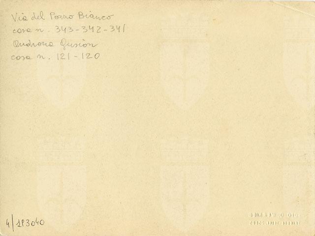Via del Pozzo Bianco durante le demolizioni previste dal piano regolatore approvato durante il fascismo. La foto inquadra la casa nn. 343-342-341, l'androna Gusion e la casa nn. 120-121.