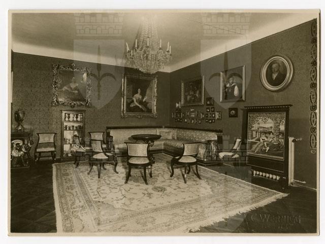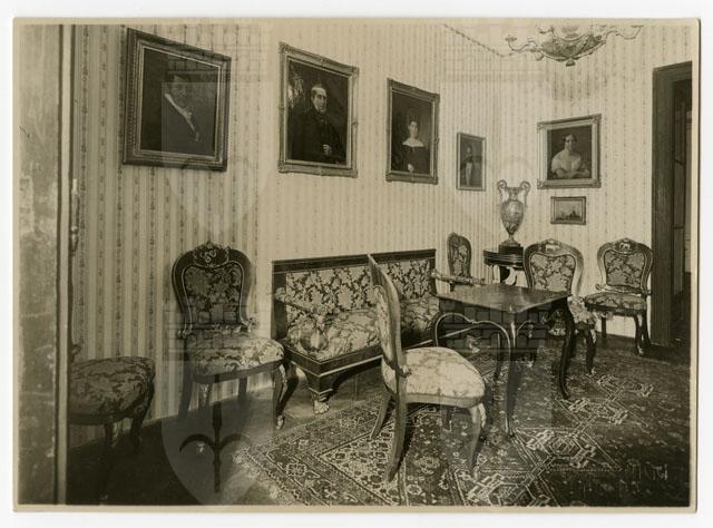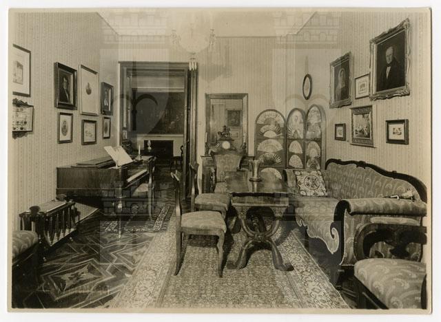 Mostra La casa dei nostri nonni : grande salone stile impero, camera da letto stile impero, anticamera, salottino di musica Biedermeier, salottino, salotto Biedermeier, camera da pranzo stile impero, salotto Biedermeier