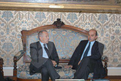 Il sindaco Roberto dipiazza con il Console generale degli Usa a Milano Douglas McElhaney durante l'incontro nel salotto azzurro del Municipio.