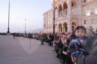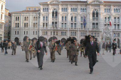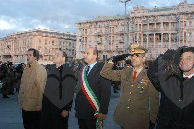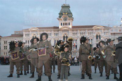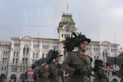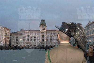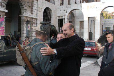 Il sindaco Roberto Dipiazza abbraccia uno dei bersaglieri sbarcati a Trieste nel 1918, varie immagini della parata - Img008580.JPG pubblicata su In Città di martedì 4 novembre 2003 in prima pagina