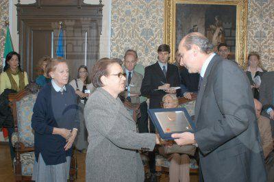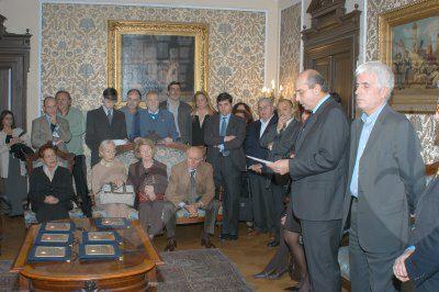 Il sindaco Roberto Dipiazza ed il vicesindaco Paris Lippi consegnano una targa ai familiari delle vittime del novembre 1953 : Trieste : 2003