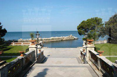 Il molo del castello di Miramare con la sfinge visto dall'alto della scalinata