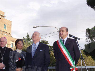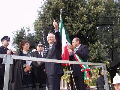 Il sindaco di Trieste Roberto Dipiazza con l'ambasciatore statunitense Melvin Sembler. presenti anche gli assessori Renzo Codarin e Fulvio Sluga, il vescovo eugenio Ravignani, i consiglieri comunali Paolo Di Tora, Michele Lobianco e Paolo Rovis
