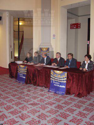 Il sindaco di Trieste Roberto Dipiazza con l'asssessore comunale Giorgio Rossi, il consigliere Paolo Rovis e l'architetto responsabile del progetto Luciano Celli durante la presentazione presso il Politeama Rossetti.