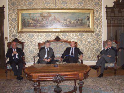 Il sindaco di Trieste con i rappresentanti della Massoneria triestina nel salotto azzurro del Municipio.