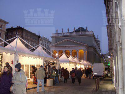 Mercatino di Natale denominato : Un'ambulanza per Natale : solidarieta' europea dei mercatini di Natale , inaugurato in piazza Sant'Antonio Nuovo : Trieste : 2002