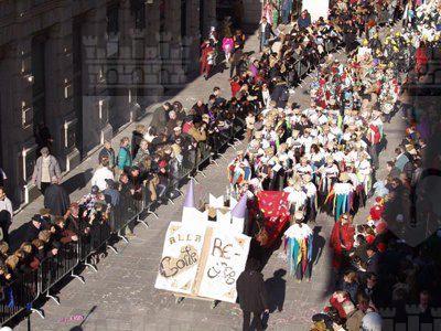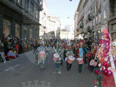 Momenti della sfilata carnevalesca commentata al microfono anche dall'assessore Maurizio Bucci