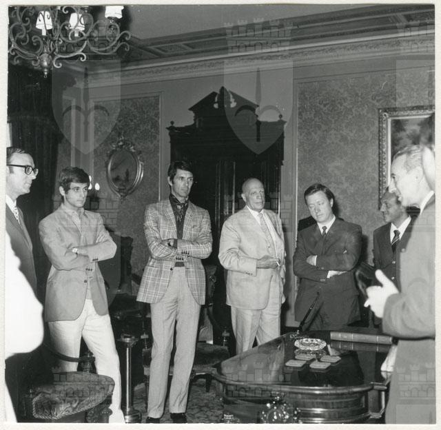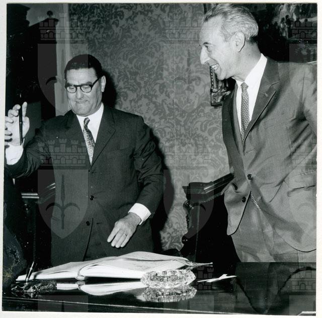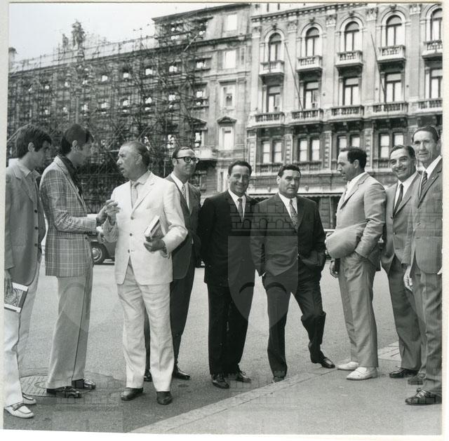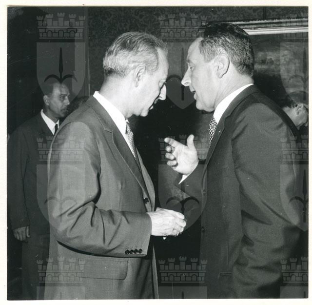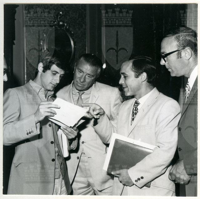 Il Sindaco ing. Spaccini riceve l'ospite accompagnato da Valcareggi, Maldini, Rivera