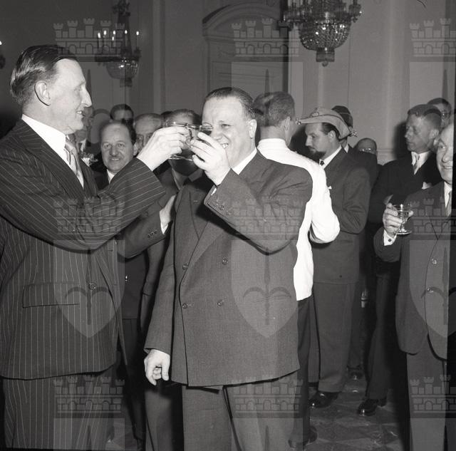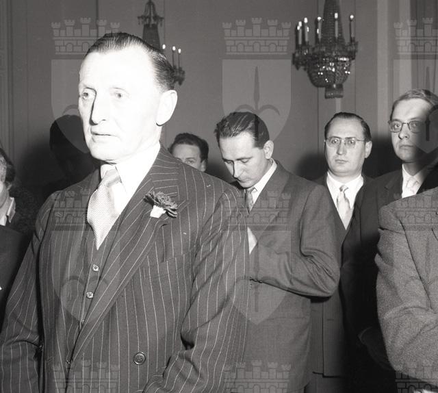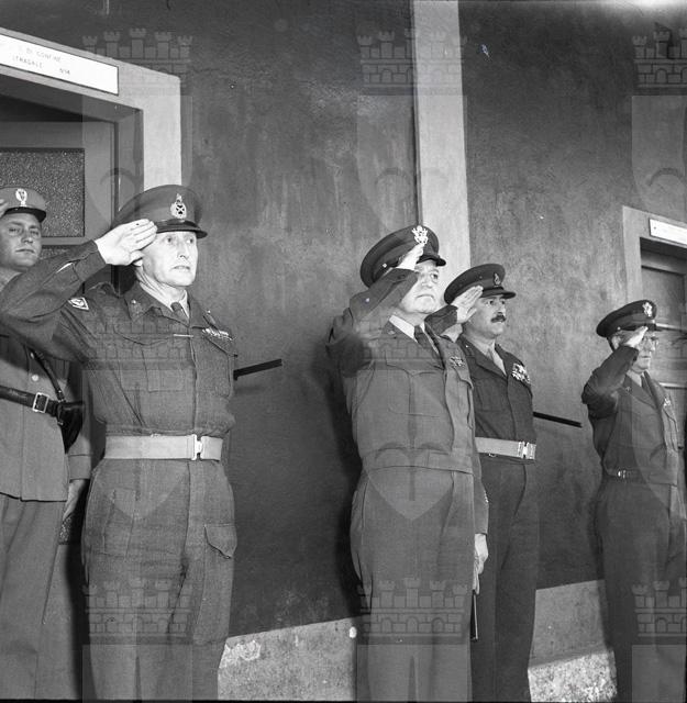 Con una solenne cerimonia in Prefettura, il maggior generale inglese sir Terence Airey si congeda dalle autorità politiche cittadine (da: Trieste 1900-1999: cent'anni di storia, v. 6, p. 184)