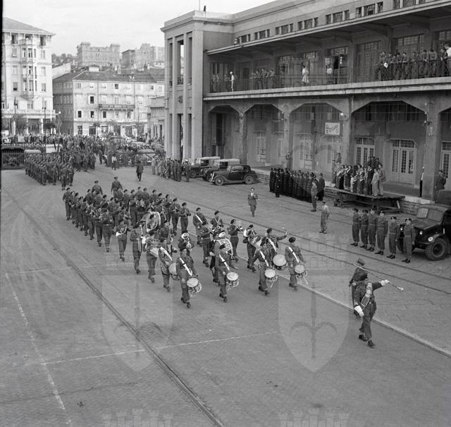 Il 22 ottobre 1951 il primo battaglione del Reggimento britannico South Lancashire, che per quattro anni ha prestato servizio lungo la linea di demarcazione tra le due zone del Territorio Libero, si imbarca sul piroscafo Empire Test, attraccato alla Stazione Marittima. Il battaglione e' diretto a Karthum, nel Sudan anglo-egiziano. Le truppe, partendo dalle caserme di via Rossetti bagagli in spalla, lasciano Trieste sfilando per le vie del centro, accompagnate dalle bande del TRUST, del reggimento North Staffordshire e del reggimento Northamptonshire