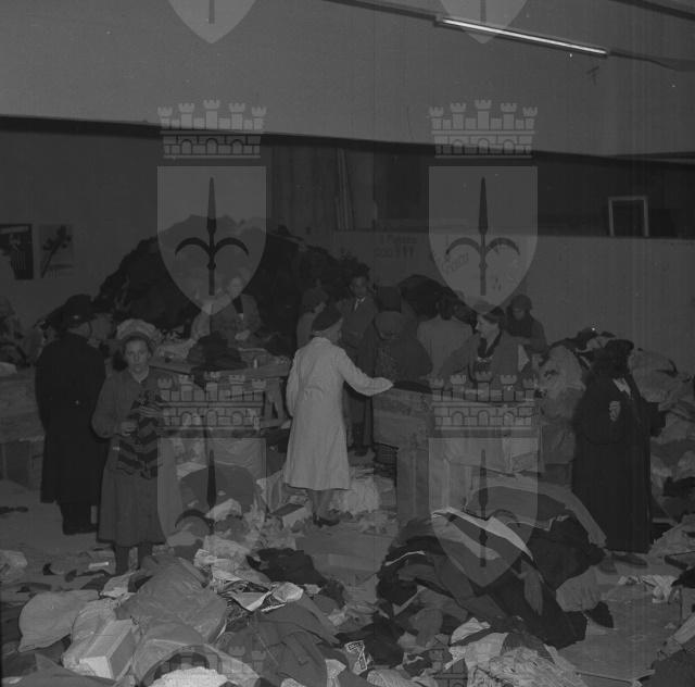 Visita del sindaco Bartoli ai magazzini della Fiera di Trieste, centro di raccolta dei materiali offerti a favore degli alluvionati