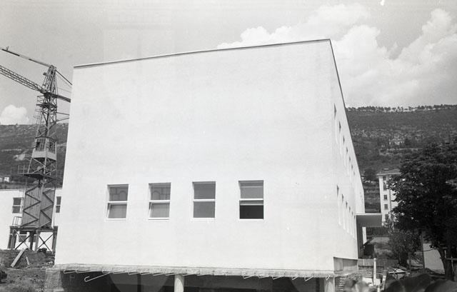 Vedute della scuola media, poi intitolata a Mario Codermatz, ancora in costruzione.