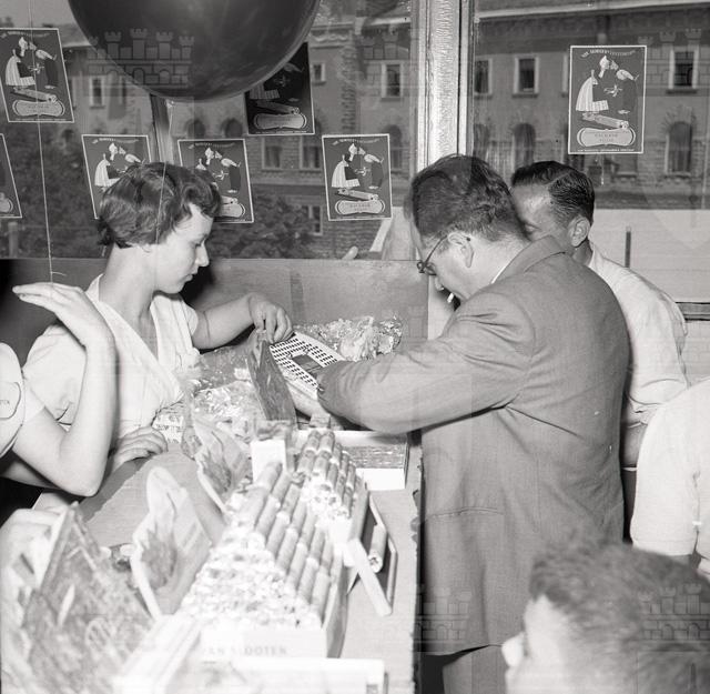 Riprese di un coro e di alcuni stand, fra cui Ameco ing. Martino rappresentante della ditta di elettrodomestici Miele, Van Slooten's Holland, Bombrini-Parodi Delfino