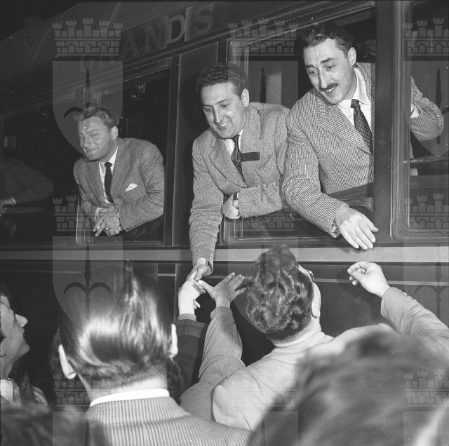 Otto sindacalisti triestini, capeggiati dai segretari della Camera confederale del lavoro dott. Novelli e Bazzaro e dal vicesegretario cap. Mislei, partono per Roma e da li' per New York per visitare i principali centri industriali e le varie organizzazioni sindacali statunitensi. Il viaggio di studio e' il risultato di un accordo fra la M.S.A. (Mutual Security Agency), il Comitato interministeriale per la ricostruzione, il Centro sviluppo economico di Trieste e la Camera confederale del lavoro e prevede l'invio di due gruppi di otto componenti ciascuno (dal Giornale di Trieste, 11 e 14.04.1953)