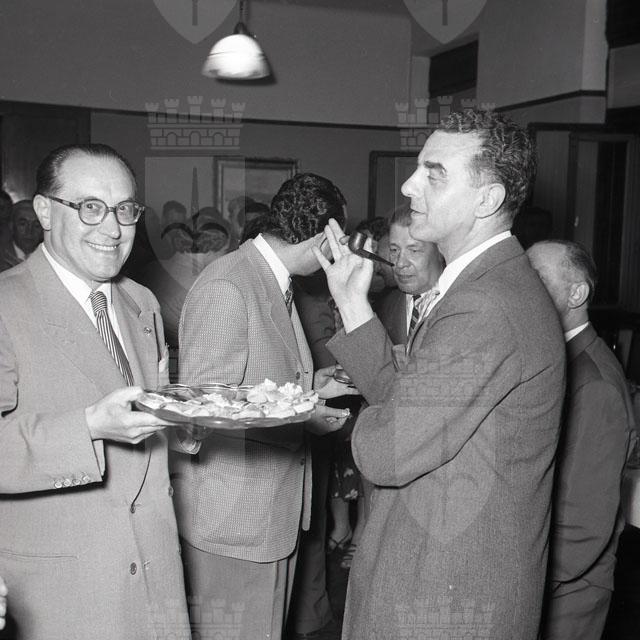 Gli industriali del legno festeggiano il capogruppo della categoria in seno all'Associazione industriali, Carlo Frandoli, insignito della commenda all'Ordine della Repubblica. Il dott. Dario Doria, presidente dell'Associazione, a nome di tutti gli industriali, offre a Frandoli l'insegna onorifica. (da: Giornale di Trieste, 20 giugno 1953)