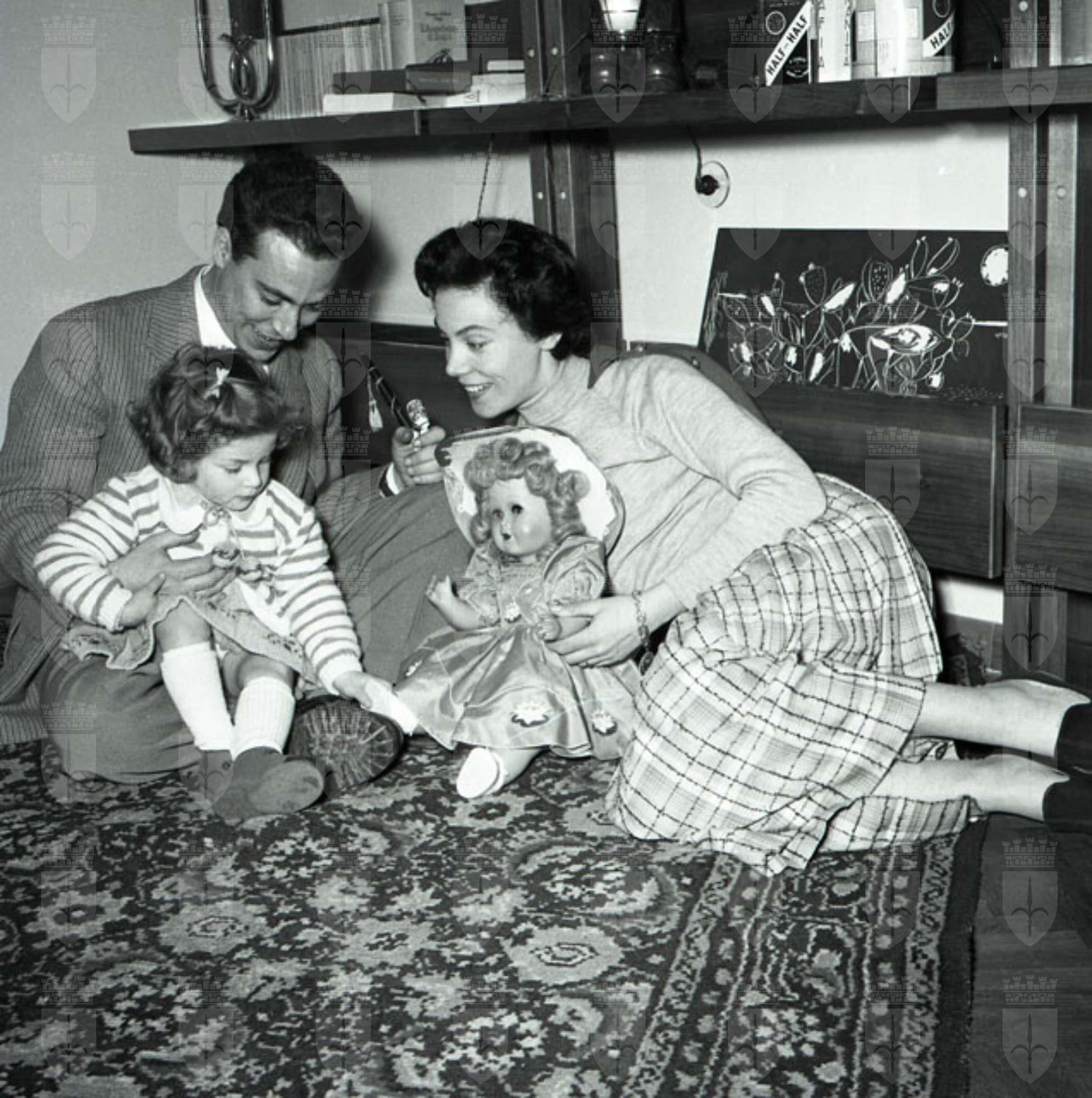 Bambina immortalata mentre stira e gioca con i genitori