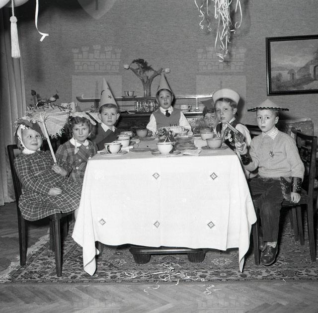 Bambino festeggia il suo settimo compleanno con gli amici, durante il Carnevale
